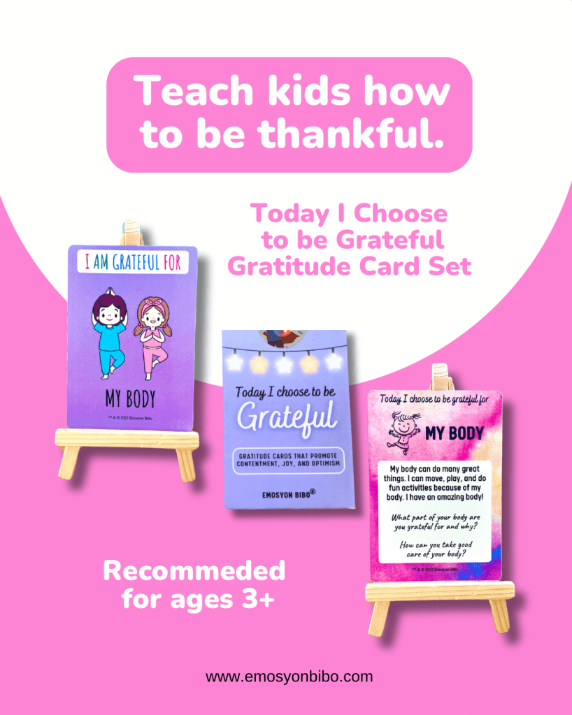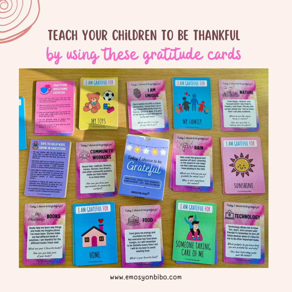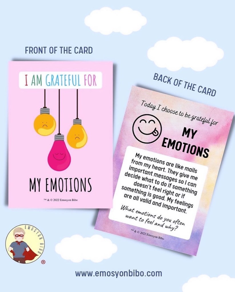 In our society where children get everything almost instantly, it’s not easy to teach them contentment. In today’s world, raising children who are grateful for what they have is more important than ever. That is why we created a tool to help us grow our children’s gratitude muscles. Emosyon Bibo’s Gratitude Cards are a fun and engaging way to help your child develop an attitude of gratitude.